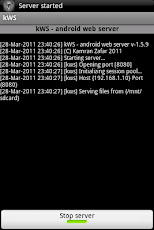 另外,還有一套叫 kWS Android Web Server 的軟體,這一套就比較像是傳統的 Web Server,不過,kWS 有提供檔案傳輸的功能,所以,透過 kWS 就可以用 Web 界面來將手機裡的檔案下載出來哩 !